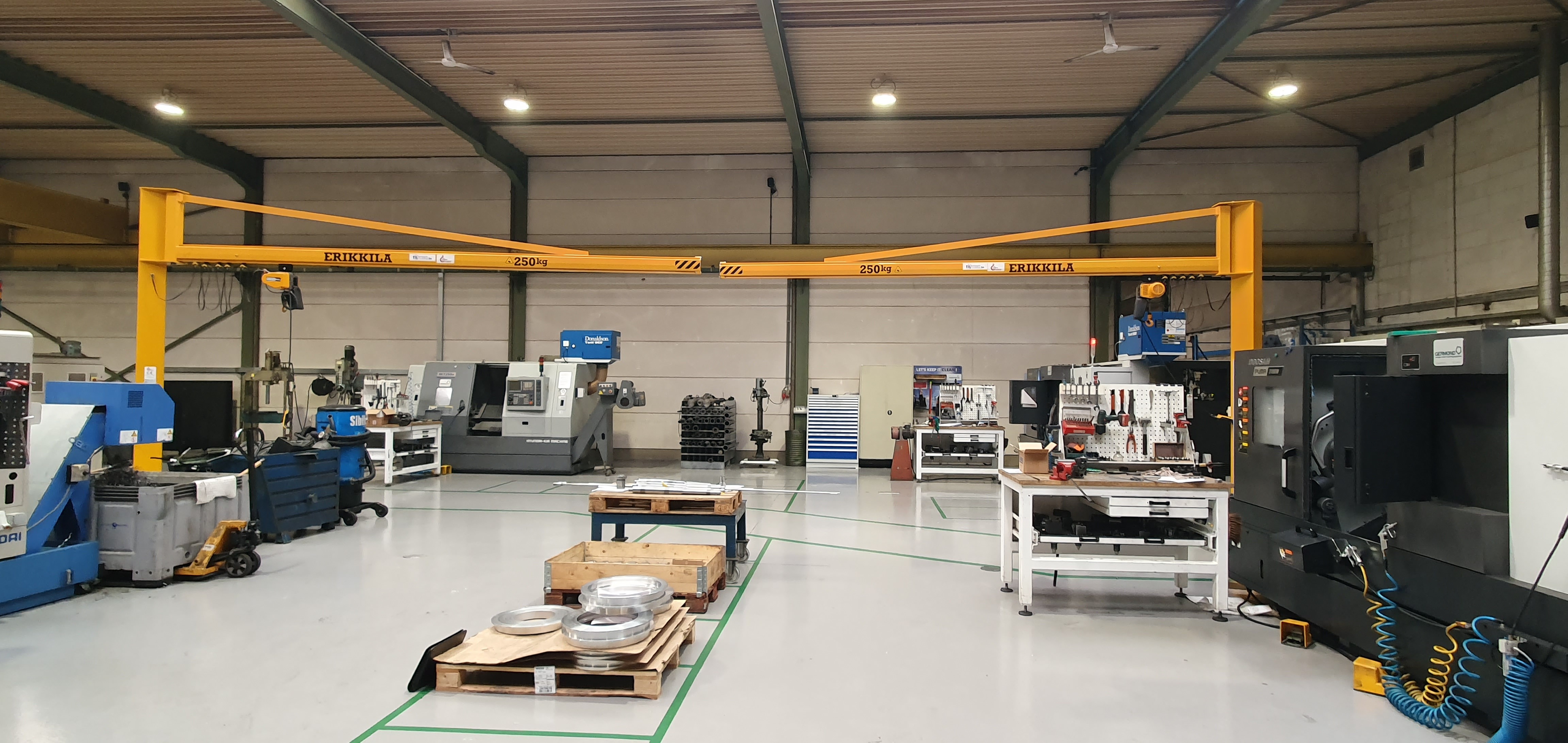 Met een zwenkkraan breng je snel en veilig werkstukken of gereedschap in en uit de machine, zonder dat je op de bovenloopkraan hoeft te wachten. Ideaal voor het verplaatsen van lasten over een kleinere werkzone.